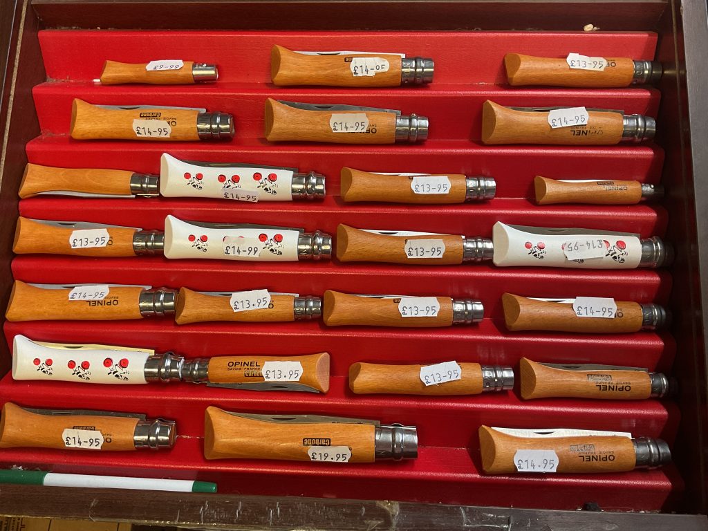Knives! Opinel available in size 5 to 12.